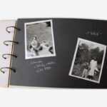 Fotografie můžete přilepit lepidlem, ale ještě lépe si u nás můžete přiobjednat samolepící fotorůžky a nebude vám hrozit žádná nehoda se slepenými stránkami 🙂 případně můžete použít dekorativní washi pásky, kteé se dají koupit v papírnictví.
