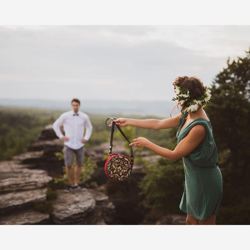 Díky zabudovanému šroubovacímu systému si zákazník může navolit dle naší nabídky obě strany kabelky a později dokoupit a měnit třeba za jiné. Může si navolit s dekorem (ornament), s kruhovou perforací skrz na skrz (lze vyšít svůj vlastní dekor, díky sadě lněných niťí) nebo bez dekoru hladkou stranu. Zadní strana kabelky je vždy hladká bez dekoru.